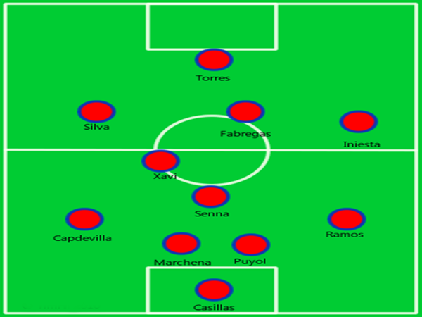 Sơ đồ chiến thuật của đội hình bóng đá Tây Ban Nha 2008